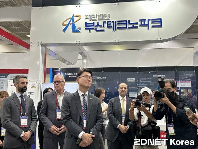 이어 부산테크노파크 부스를 방문했다. 부산테크노파크는 현재 추진 중인 스마트 헬스케어와 돌봄 융합 산업의 미래 비전을 소개했다.