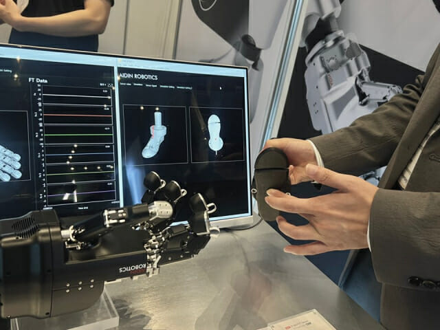 에이딘로보틱스가 이번 행사에서 선보인 제품은 ▲손끝 택타일 센서(ATT) ▲손목·관절용 6축 힘·토크 센서(AFT150-D50) ▲발목용 3축 힘·토크 센서(3FT1000/2000) 등 총 3종이다. 이 센서들은 휴머노이드의 손과 발에 장착돼 사람의 촉각, 압력, 균형 감각을 모사한다.