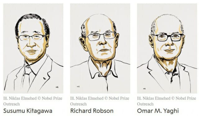 올해 노벨 화학상은 스스무 기타가와 일본 교토대 교수, 리처드(리처드) 롭슨 호주 멜버른대 교수, 오마르 M. 야기 미국 캘리포니아대 버클리(UC 버클리) 교수가 공동 수상했다