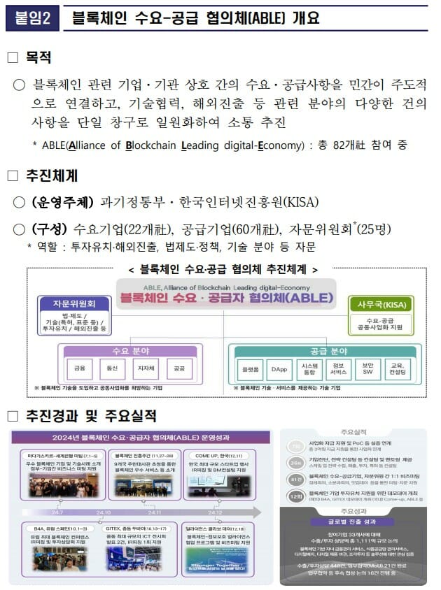 과기정통부와 KISA는 2024년 해외진출 지원사업을 시작한 이후 ▲국제기구와의 공동 프로젝트 발굴‧추진 ▲글로벌 IR 행사 및 전시회 참여 ▲해외 기관 간의 네트워킹 및 협력 채널 구축 등을 통해 국내 블록체인 기업들의 글로벌 진출 기반을 다져왔다.