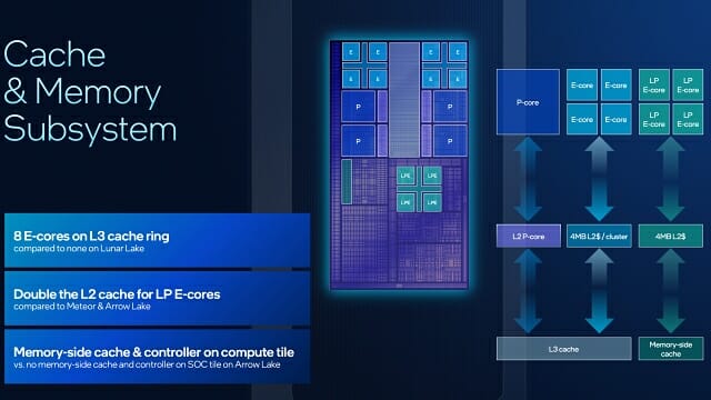 스테판 로빈슨 펠로우는 "메모리에서 데이터를 가져올 때 발생하는 전력 소모와 지연 시간을 줄일 수 있는 '메모리 사이드 캐시'를 두는 한편 LP E코어의 캐시 용량을 4MB로 늘려 성능과 응답시간, 배터리 작동 시간을 모두 향상시켰다"고 설명했다.