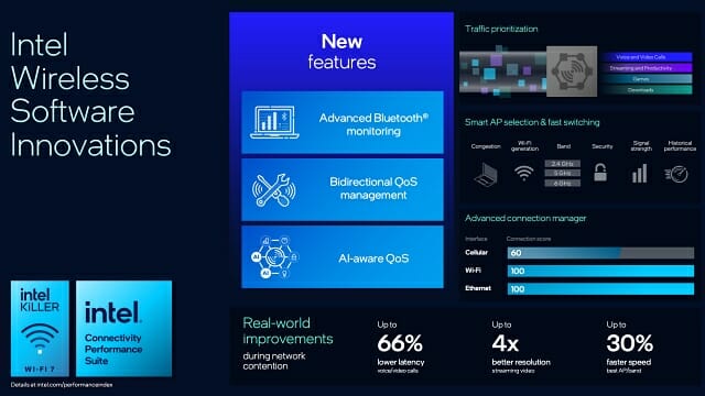 인텔이 제공하는 와이파이 최적화 전용 소프트웨어 '커넥티비티 퍼포먼스 스위트 앱'은 5.0으로 업데이트됐다. AI를 이용해 네트워크 트래픽을 분류하고, 코파일럿이나 챗GPT 등 응답 속도가 필요한 소프트웨어 데이터를 우선 전송한다.