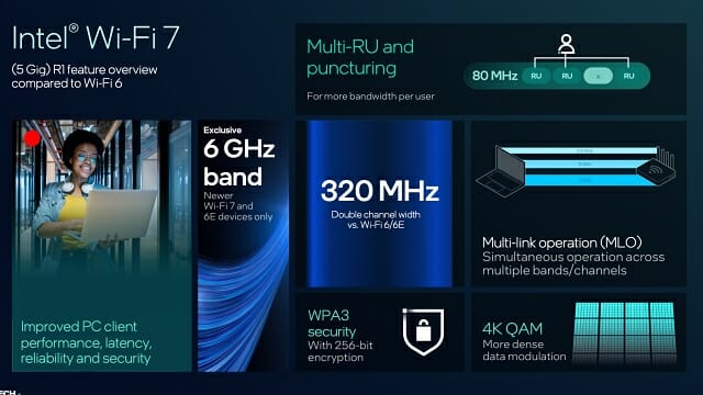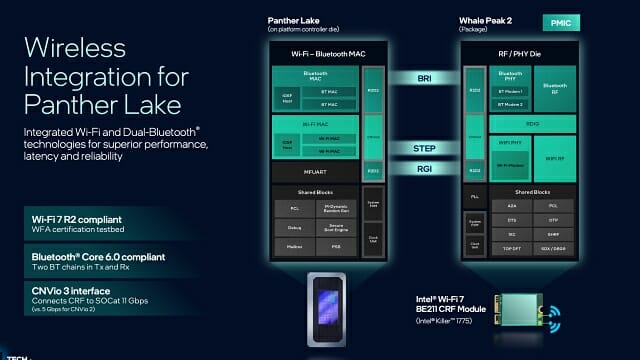 인텔 차세대 모바일(노트북)용 프로세서 '팬서레이크'(Panther Lake)에도 현행 최신 규격인 와이파이7(802.11be)이 탑재되지만 속도와 반응성은 한층 더 개선될 예정이다. 또 블루투스6.0/LE 기능을 통합한 편의 기능도 함께 제공 예정이다.