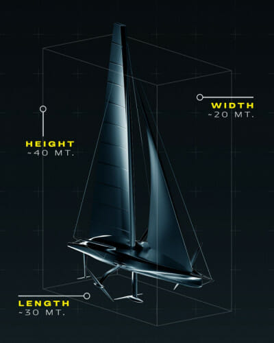 지오반니 솔디니 하이퍼세일 프로젝트 총괄은 "우리의 도전은 가장 빠르고, 자급자족할 수 있는 요트를 만드는 것이다. 그래서 우리는 '대형 플라잉 모노헐'을 세계 최초로 설계하기로 했다"며 "트라이머란의 안정성과 속도, 모노헐의 낮은 저항력을 결합한 개념이다"고 설명했다.
