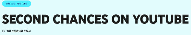 유튜브가 과거 정책 위반으로 계정이 정지된 사용자 대상으로 다시 채널을 개설할 수 있는 기회를 준다. 단, 기존 구독자나 콘텐츠 자동 승계는 안 된다. 또 저작권 침해로 정지된 계정은 제외된다.