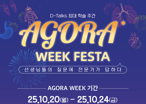‘디톡스(D-Talks)’는 2022년 개설된 대원제약의 의료 정보교류 플랫폼으로, ‘건강한 디지털 습관 D-Talks’를 슬로건으로 연간 200회 이상의 온라인 심포지엄을 운영하고 있다. AGORA WEEK는 디톡스를 통해 상·하반기 두 차례 진행되는 종합 학술대회로, 개원가 진료에 도움이 되는 질환 교육과 각 분야 전문가와의 질의응답도 가능한 것이 특징이다.