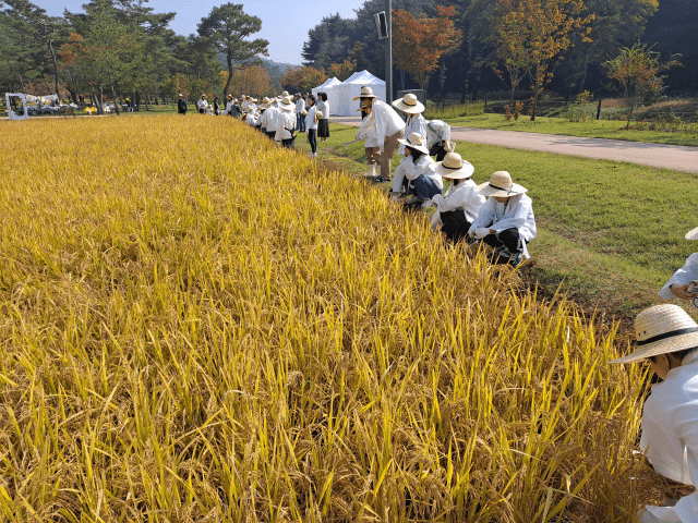 국가유산청 궁능유적본부 세종대왕유적관리소(소장 곽수철)는 세종대왕릉 위토답에서 지역아동센터 아동을 대상으로 추수 체험행사를 진행한다고 14일 밝혔다.