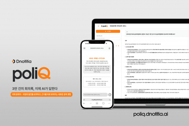 이 서비스는 누구나 쉽고 빠르게 국회의 본회의 및 각종 위원회에서 논의된 주요 정책과 발언을 검색할 수 있으며, 약 3만 건의 회의록을 바탕으로 사용자 질의와 관련된 내용을 찾아 요약·제시하고 원문 출처를 바로 확인할 수 있다. 누구나 웹사이트(poliq.dnotitia.ai)를 통해 오픈 베타 테스트에 참여할 수 있다.