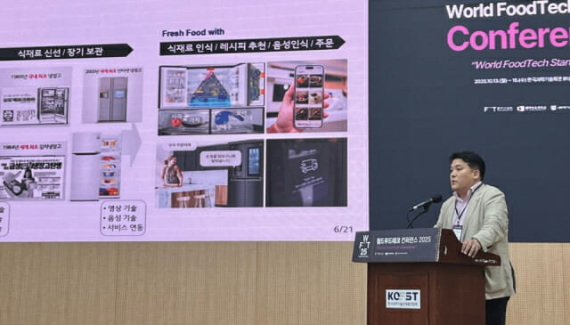 이재모 LG전자 HS기술전략담당은 14일 서울 한국과학기술회관에서 열린 '월드푸드테크 컨퍼런스 2025'에서 LG전자가 추진 중인 스마트 키친과 데이터 기반 생활가전 비전을 공유했다.