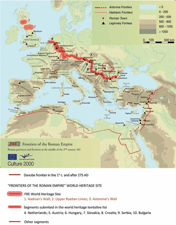 로마제국의 국경은 1987년 영국 하드리아누스 방벽에서 시작해 2005년 독일의 게르마니아 상부 라이티아 리메스, 2008년 스코틀랜드의 안토니누스 장벽이 순차적으로 추가됐다.