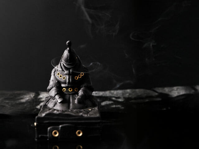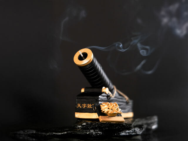 레진 소재로 제작돼 금속의 질감과 중량감을 살렸으며, 블랙과 골드의 대비를 통해 전장의 긴장감과 장엄함을 시각화했다. 향을 피웠을 때 총구를 통해 퍼져나가는 연기는 전장의 포연을 연상시킨다.