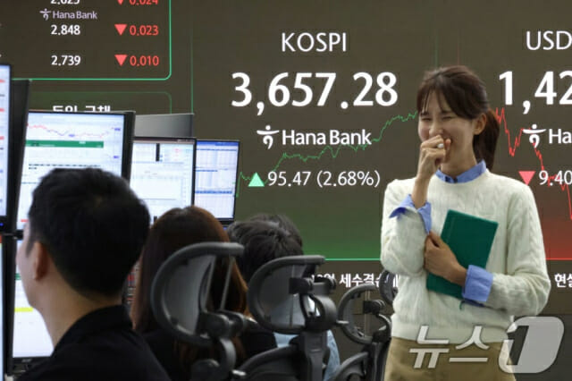 15일 코스피 지수는 전 거래일 보다 2.68%(95.47포인트) 오른 3657.28로 거래를 마쳤다.
