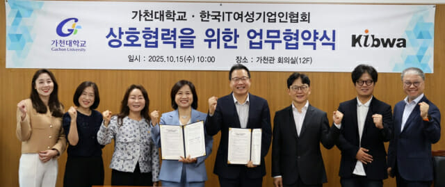 협약식에는 한국IT여성기업인협회 김덕재 회장, 가천대학교 윤원중 부총장, 그리고 양 기관 주요 관계자들이 참석해 상호 교류 및 협력 방안을 논의했다.