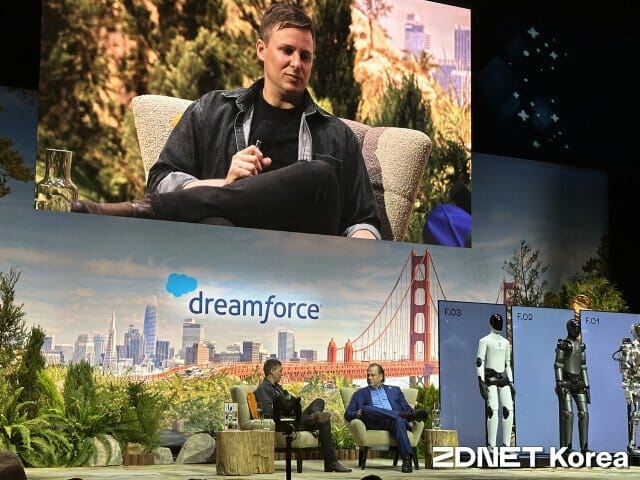 브렛 애드콕 피규어AI 최고경영자(CEO)는 16일까지 미국 샌프란시스코 모스코센터에서 열리는 '드림포스 2025'에서 마크 베니오프 세일즈포스 CEO를 만나 휴머노이드 로봇의 대중화에 필요한 요소를 이같이 밝혔다.