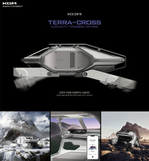 이를 통해 학생들은 '자연을 향한 모빌리티(MOBILITY TOWARDS THE NATURE)'라는 주제를 토대로, KGM의 디자인 철학 'Powered by Toughness'를 젊은 디자이너의 시각으로 재해석한 미래형 크로스오버 모빌리티 2종의 디자인 모델을 완성했다.