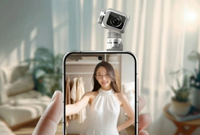 이 제품의 이름은 ‘로봇 폰’으로 인공지능(AI) 기반 짐벌 카메라가 장착돼 스마트폰 후면에서 펼쳐지며 어느 방향으로든 사진과 영상을 촬영할 수 있다.