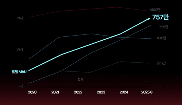 이 기간 티빙의 이용자 수도 10배나 늘렸다. 최근 3년 동안 매년 평균 30% 이상의 MAU 성장을 일궜고, 지난해 10월 독립법인 출범 후 처음으로 800만 MAU를 돌파했다.