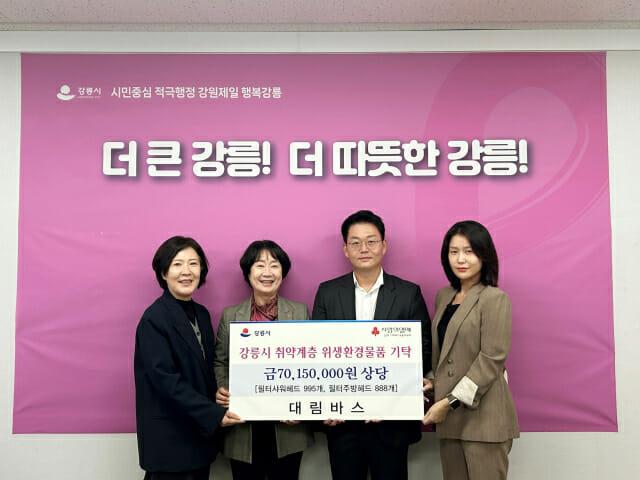 강태식 대림바스 대표는 "강릉 주민들의 생활에 힘을 보태고자 필터 제품을 지원하게 됐다"라며 "주민들의 생활 안정에 실질적인 도움이 되길 바란다"고 말했다.