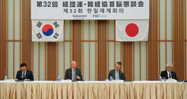 한국경제인협회(이하 한경협)와 일본 경제단체연합회(이하 경단련)는 17일 오전 도쿄 경단련회관에서 제32회 한일재계회의를 개최하고, 양국관계를 새로운 단계로 끌어올리기 위해 더욱 긴밀한 연계·협력의 길을 개척하자는 내용을 담은 공동성명을 채택하였다.