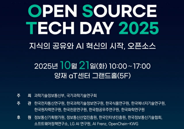 한국전자통신연구원(ETRI)을 비롯한 국내 대표적인 정부출연연구기관 6곳이 오픈소스 연국개발(R&D) 성과를 공개하는 '오픈소스 테크데이 2025'를 마련한다.