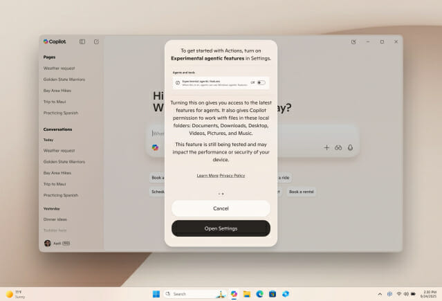 윈도우 설정과도 연동된다. 사용자가 윈도우 PC 설정에 대해 "화면을 더 읽기 쉽게 만들어줘", "집중을 위해 방해 요소 줄여줘" 등 자연어 명령으로 요청하면, 코파일럿이 관련 설정 페이지로 자동 안내한다.
