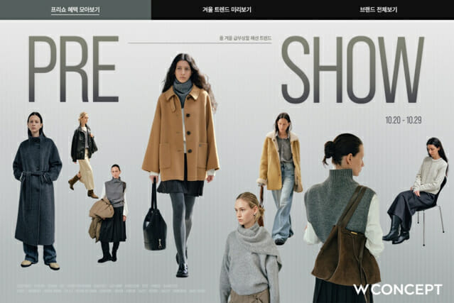 이러한 수요에 발맞춰 W컨셉은 오는 20일부터 29일까지 ‘프리쇼’를 열고, 겨울 옷 판매에 나선다.