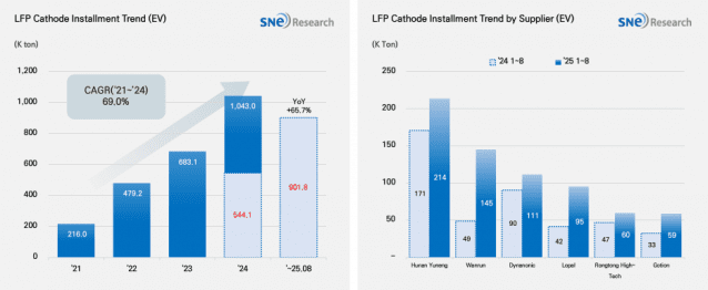 SNE리서치는 LFP의 고성장이 중국 소재 기업들의 글로벌 지배력 강화로 이어지고 있으며, 전 세계 배터리 소재 공급망에서 중국 의존도가 더 고착화되는 흐름을 만들고 있다고 분석했다.