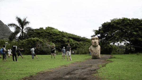 뉴욕 빙엄턴 대학교 인류학과 칼 리포 교수가 이끄는 연구팀은 모아이 석상을 가상으로 재현했다. 그런 다음 밧줄 3개와 약 50~60명 정도의 인원만 있으면 모아이가 평균 89cm의 보폭으로 라파누이 지형을 가로질러 이동할 수 있다는 것을 확인했다.