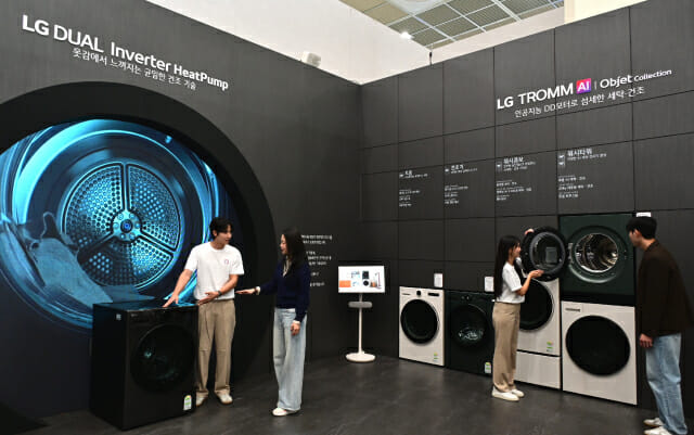 또 LG전자는 세탁기, 건조기, 워시콤보, 워시타워 등 4개 유형의 세탁 가전으로 혁신적인 프리미엄 세탁·건조 라이프를 제시한다. LG AI 세탁 가전은 AI가 고객이 투입한 세탁물의 무게, 습도, 재질을 분석해 최적화된 맞춤 세탁건조를 하는 'AI DD 모터'가 탑재돼 있다.