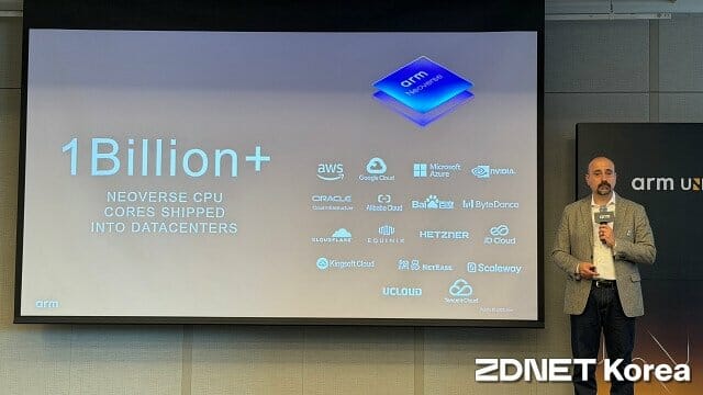 Arm은 2019년 대형 클라우드 서비스 제공자와 데이터센터를 겨냥한 CPU IP '네오버스'(Neoverse)를 출시한 이후 AWS, 구글, 마이크로소프트, 오라클 등 주요 CSP(클라우드 서비스 사업자)의 서버에 10억 개 이상의 코어를 출하하는 성과를 거뒀다.