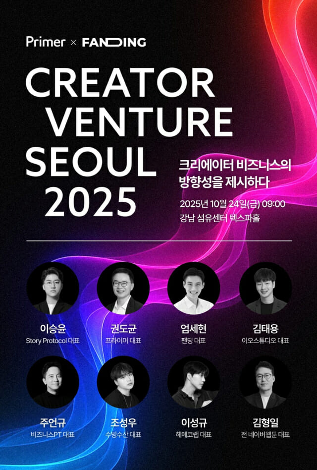 설은서 프라이머 파트너는 “크리에이터는 자신만의 독립적인 팬덤과 콘텐츠를 바탕으로 스타트업 생태계의 새로운 플레이어로 떠오르고 있다”면서 “CVS 2025를 기점으로 크리에이터와 벤처 업계가 연결돼 더 큰 도전을 할 수 있도록 적극 도울 것”이라고 밝혔다.