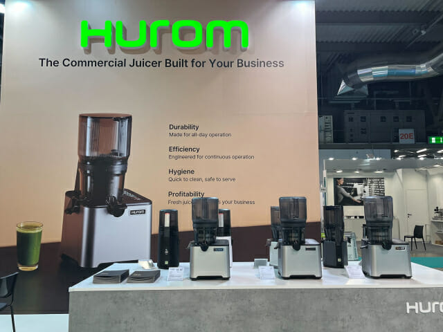 전시 부스에서는 CE50·CP50 시연과 함께 '로우 코어 주스' 체험 행사가 진행됐다. 휴롬은 유럽을 비롯한 글로벌 호레카 시장 확대를 위한 교두보로 이번 참가의 의미를 부여했다.