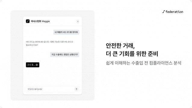 이에 페더레이션은 중소기업이 겪는 문제들을 해결하기 위해 'AI 무역 동반자'라는 청사진을 제시한다. 이는 단순히 정보를 제공하는 것을 넘어 마치 기업 내부에 24시간 작동하는 전문가 팀을 AI로 구현하는 개념이다. 이에 회사가 개발 중인 첫 번째 핵심 솔루션이 바로 '컴플라이언스 코파일럿'이다.