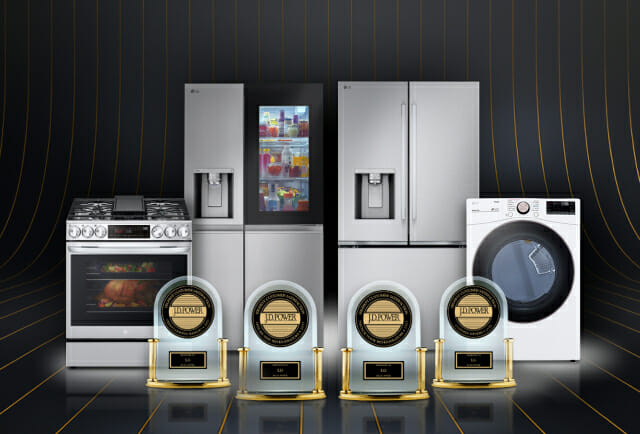 LG전자의 프렌치도어 냉장고와 양문형 냉장고는 제품 본연의 성능과 내구성, 디자인 등에서 좋은 평가를 받았다. JD 파워는 양문형 냉장고에 대해 “형태와 기능을 고려한 디자인과 식재료 정리가 쉬운 넓은 내부 공간으로 가치 항목에서 우수하다”고 설명했다. 건조기와 레인지도 성능과 기능, 디자인 등에서 탁월함을 인정받아 정상에 올랐다.