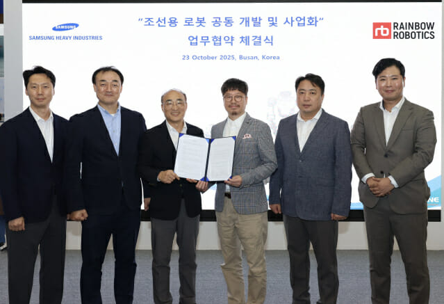 로봇 플랫폼 전문기업 레인보우로보틱스는 삼성중공업과 로봇 기반 조선 및 제조 현장 공정 자동화를 위한 업무협약(MOU)을 체결했다고 24일 밝혔다.
