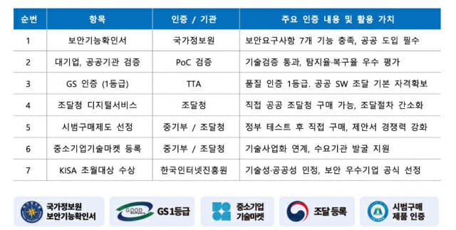 특히 국가사이버안보센터가 지난해 배포한 '국가용 보안요구사항(V3.0)'에 명시된 랜섬웨어 대응 7개 핵심분야(랜섬웨어 감시, 탐지, 탐지알림, 대응, 데이터 보호, 보안관리, 감사기록)를 모두 충족했다."