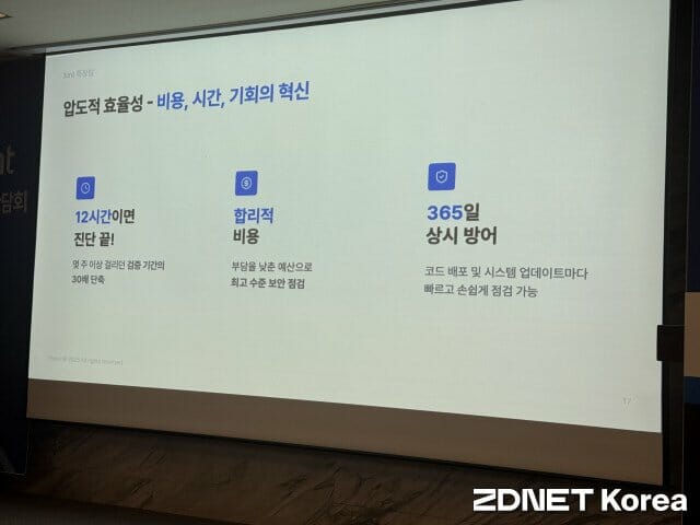 그는 "특히 모의해킹 과정에서 얻어낸 티오리 화이트해커의 노하우도 진트가 학습했으며, 고객사의 서비스가 어떻게 운영되는지 비즈니스 로직도 이해해 취약점을 찾아낸다"며 "기존 보안 점검에는 평균 10~16주의 시간과 고급 전문인력의 투입, 수천만~수억원에 달하는 비용 등의 현실적 어려움이 뒤따랐지만, 진트는 12시간이면 진단을 끝낼 수 있고 구독형의 합리적 비용에 24시간 상시 방어가 가능한 솔루션"이라고 강조했다.