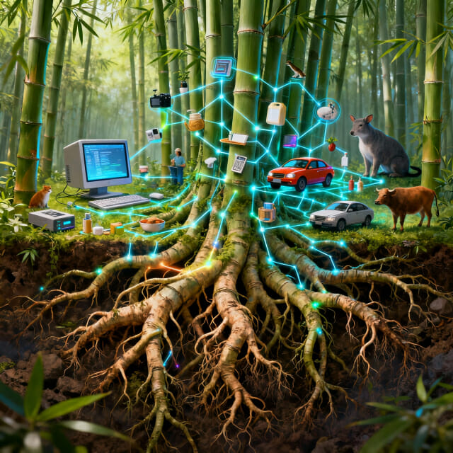 철학자 질 들뢰즈의 ‘리좀(Rhizome)’ 개념은 이런 네트워크의 특성을 더 잘 설명합니다. 들뢰즈는 나무처럼 줄기와 가지가 뻗어 나가는 위계적 구조 대신, 땅속에서 사방으로 연결되는 뿌리, 즉 리좀을 이야기합니다. 현대 기업도 더 이상 단일 축의 위계 조직이 아닙니다. 부서와 개인, 프리랜서, 협력 기업, 그 모두가 실시간으로 수평적이고 유동적인 연결을 이룹니다. 내가 맺는 하나의 거래, 하나의 말이 조직 전체에 파동을 일으키는 시대가 된 것입니다.