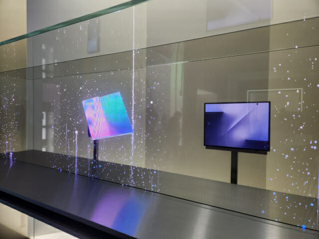 시연 제품은 정확한 크기를 측정하기 어렵고 직접 만져볼 수 없게 LED 유리 안에 전시되어 있으나 LED로 구현된 모습으로 추정하면 가운데 디스플레이를 두고 왼쪽이 먼저 안으로 접히고 오른쪽이 뒤덮는 형태다.