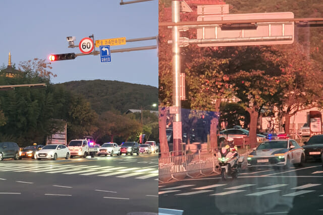 경주 시내에선 각국의 정상이 도착할 때마다 전면적인 차량 통제가 이뤄질 것으로 보인다. 현재 경주는 가장 높은 수준의 비상근무 단계인 '갑호 비상'이 발령돼 있는 상태로, 정상회의 등이 열리는 보문관광단지와 최고경영자(CEO) 서밋 행사장 등 주요 장소 경호는 이날 한층 더 강화됐다.