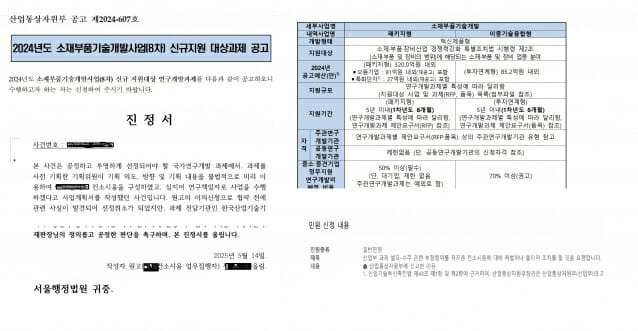 소송을 제기한 B 컨소시엄 측은 소재부품기술개발사업 과제 기획 관련 보안서약서를 제출한 C모 기획위원이 A 컨소시엄을 구성, 자신이 기획한 과제의 연구책임자로 참여하며, 신청자격 적정성 확인서 등을 허위로 제출했다고 주장하고 있다.