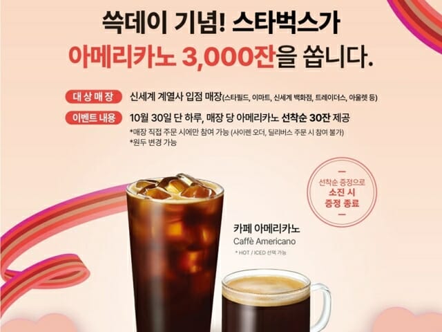 스타벅스가 오는 10월 30일부터 11월 9일까지 진행되는 신세계그룹의 대규모 쇼핑 행사 ‘2025 대한민국 쓱데이’에 참여해 역대급 고객 혜택을 선보인다.