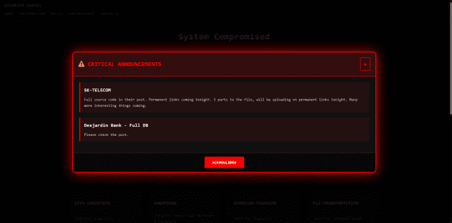 29일 본지 취재를 종합하면 랜섬웨어 조직 '코인베이스카르텔(Coinbasecartel)'은 자신들의 다크웹 사이트에 SK텔레콤 소스코드를 탈취했다는 게시글을 업로드했다.