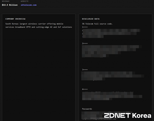 SK텔레콤의 소스코드를 탈취했다는 랜섬웨어 조직의 주장이 나왔다.