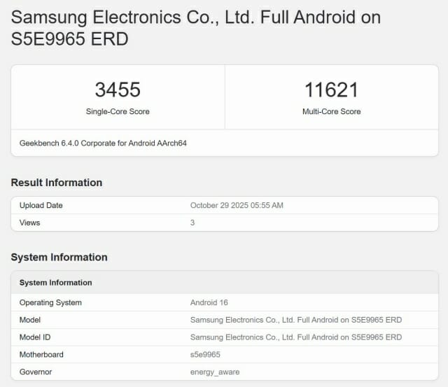 이날 벤치마크 성능 사이트 긱벤치에 등장한 엑시노스 2600칩의 점수는 싱글코어 3,455점, 멀티코어 11,621점으로 지난 주보다 더 올라갔다. 경쟁사 제품인 퀄컴 스냅드래곤 칩의 점수는 2,865점과 9,487점, 애플 A19 프로 칩의 경우 3,753점, 9,702점이다.