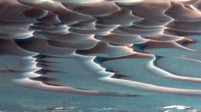 화성 모래언덕, 특히 초승달 모양의 ‘바르한(barchans)’ 사구는 바람이나 물이 느슨한 모래 위로 흐르는 환경이라면 어디서나 형성된다. 지구의 사막과 해저 뿐 아니라 화성에서도 쉽게 발견된다.