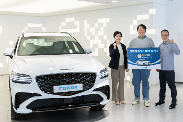 1등 경품 제네시스 GV70 차량은 서울 금천구에 거주하는 이승현 씨에게 전달됐다. 지난 29일 열린 전달식에는 판매를 진행한 코웨이 가산지국 권명숙 지국장과 문광열 코닥이 참석해 당첨을 축하했다.