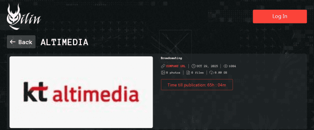 30일 본지 취재를 종합하면 올해들어 가장 활발한 공격을 시도하고 있는 랜섬웨어 그룹 '킬린(Qilin)'은 29일 자신들의 다크웹 사이트에 KT알티미디어를 압박하는 게시글을 업로드했다.