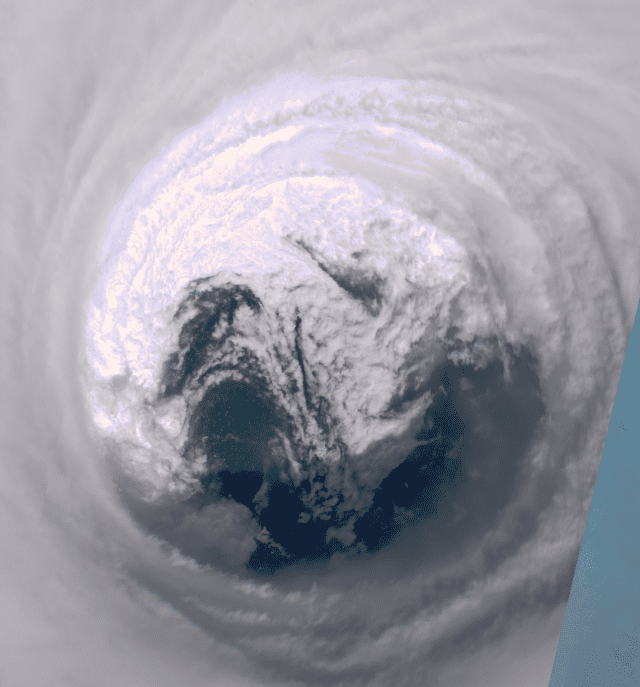 유럽우주국(ESA)의 센티넬-2 위성이 촬영한 또 다른 사진들도 허리케인의 위력이 절정에 달했을 때의 허리케인의 눈을 정면으로 내려다보고 있다.