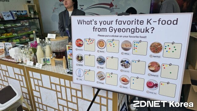 K-푸드 코너에서는 해외에 수출되는 음식들을 시식할 수 있고, 현장에서 인기 투표도 진행 중이다. 가장 인기 있는 메뉴는 ‘떡볶이’다. 인기 애니메이션 '케이팝 데몬 헌터스’에서 등장해 주목받은 떡볶이는 물론, 채식주의자를 겨냥한 비건 잡채 등 새로운 한식도 맛볼 수 있다.